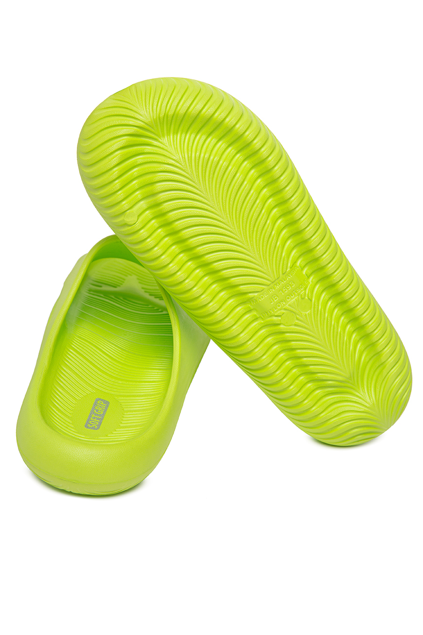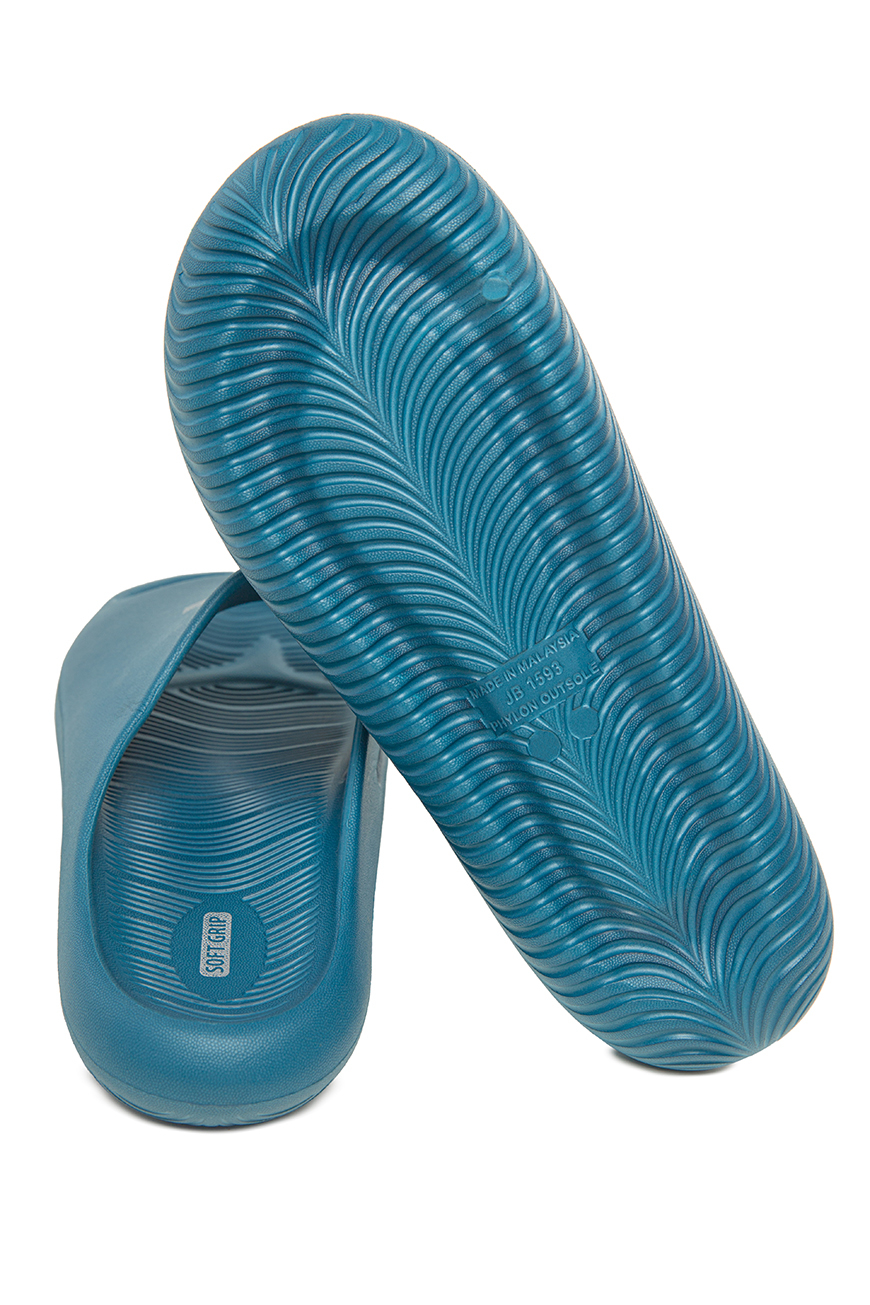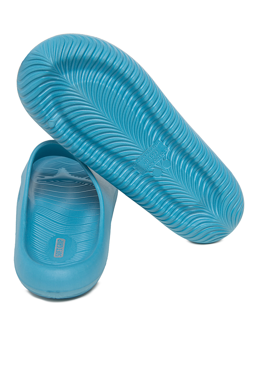 Бесшовная колодка повторяет естественные контуры стопы. Шлепки удобно сидят на ноге и не слетают во время движения. Рельефная поверхность стельки уменьшает скольжение стопы внутри обуви и создает легкий массажный эффект. Противоскользящая подошва гарантирует надёжное сцепление с мокрыми и гладкими поверхностями, такими как плитка, бортики бассейна или пол душевой кабины.